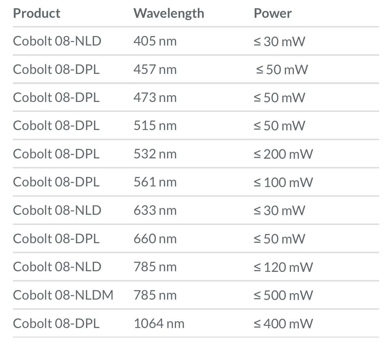 Cobolt推出窄線寬633nm NLD激光器可用于拉曼等研究 技術(shù)資訊, 資訊中心 Cobolt 08-01系列拉曼激光器再添新波長,633nm VBG窄線寬激光,可替換HeNe激光器,成為拉曼光譜系統(tǒng)新選擇。線寬僅1pm,光譜純度可達40~60dB,且集成光隔離器保護激光管。 除此之外,405nm和785nm VBG窄線寬激光性能進一步提升,線寬均可達1pm,且785nm可提供單橫模輸出。 08-01系列全部可選波長 點擊下方鏈接查看詳情: 08-01窄線寬連續(xù)激光器 2022年9月28日